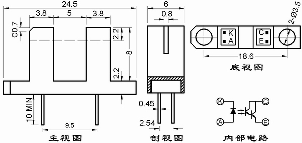 高灵敏度复合光电晶体管组成。