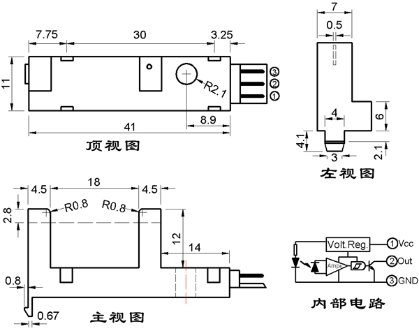 ● 光缝宽度:0.5mm;光轴中心:2.8mm。