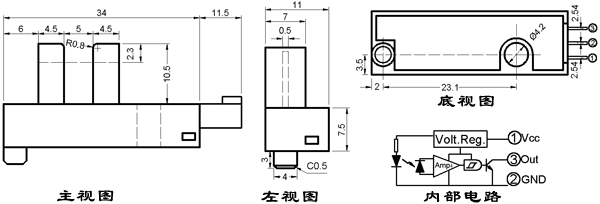 ● 光缝宽度:0.5mm;光轴中心:2.3mm。