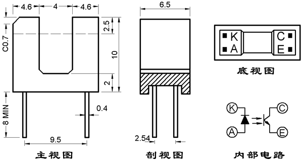 ● 光缝宽度:0.5mm;光轴中心:2.5mm。