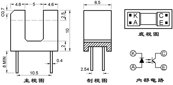 ● 光缝宽度:0.5mm;光轴中心:2.5mm。