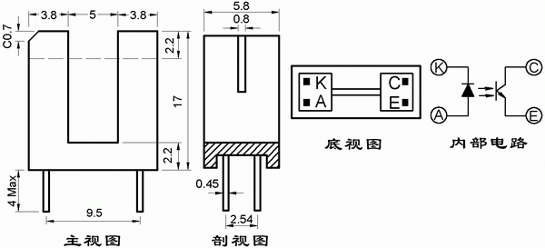 ● 光缝宽度:0.8mm;光轴中心:2.2mm。
