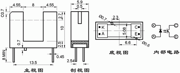 ● 光缝宽度:0.5mm;光轴中心:2.7mm。