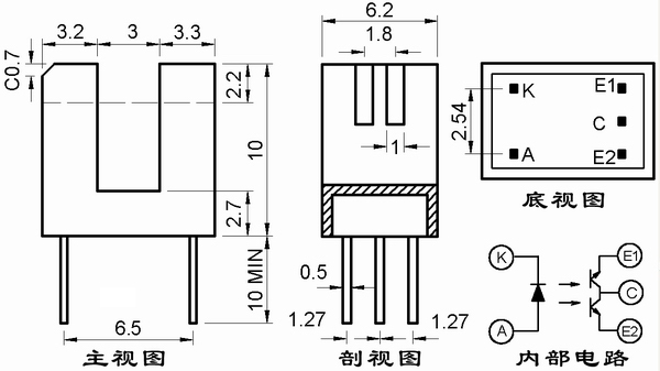 高灵敏度双光电晶体管组成。